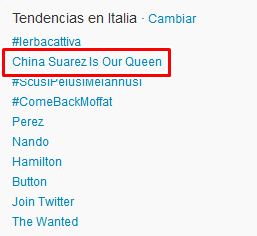 "China Suarez Is Our Queen" foi TT na Itália!